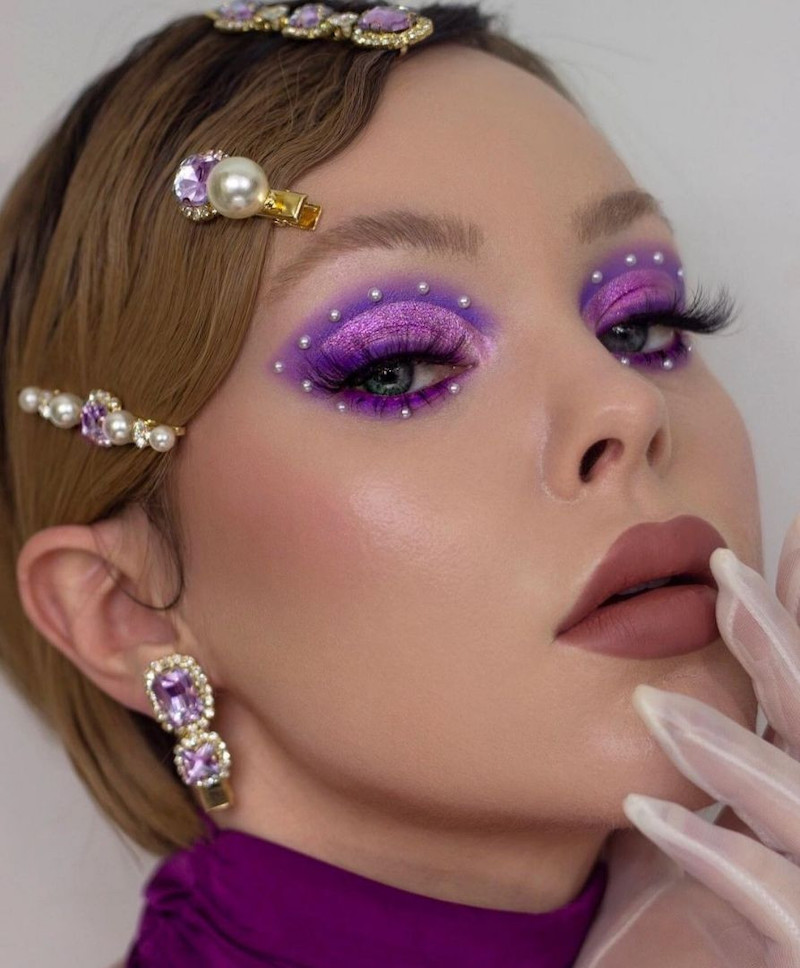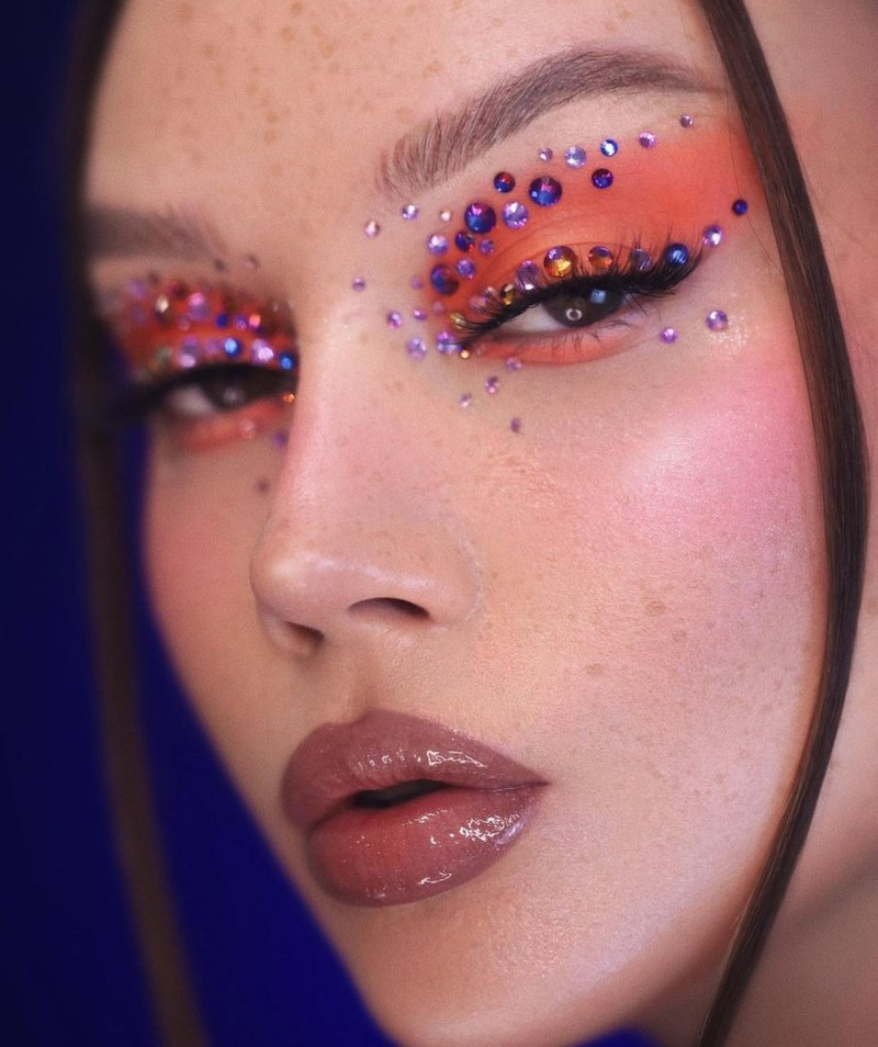 Há quem goste de chegar chegando, daí vale colocar os cristais sobre maquiagem super colorida também.