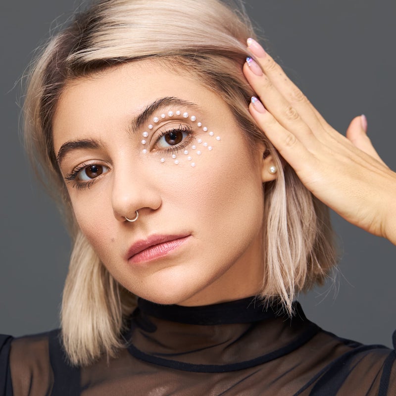 Claro que você pode adaptar ao seu gosto, usando mais ou menos pedrinhas, então não existe regra, vai da sua vontade – você pode ser mais minimalista e colocar apenas um ponto de brilho ou incrementar sem medo. Tem cristais pequenos ou maiores, na cor prata ou colorido e você pode usá-los com ou sem maquiagem, só o brilho na pele também faz um super efeito.